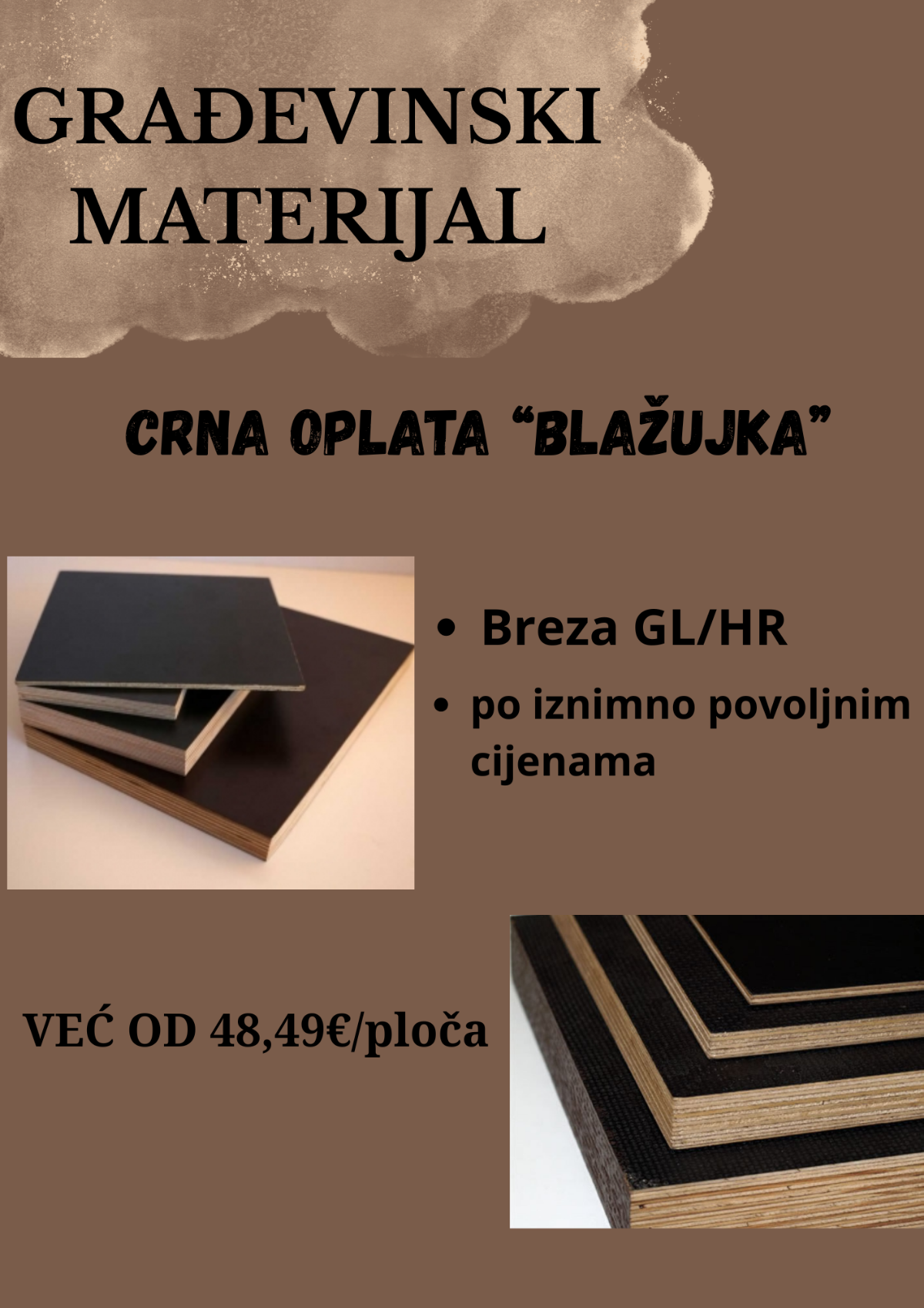 GRAĐEVINSKI MATERIJAL - CRNA OPLATA